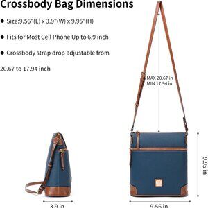 Measurements: Main Dimensions: 9.56" x 9.95" x 3.9"; Strap Drop: 17.94" to 20.67"