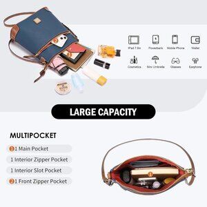 Crossbody Bag Women PU Leather Medium Light Travel Purse Stylish Functional — Perfect for everyday outings or travel. A chic mix of blue with brown accents for a versatile look.