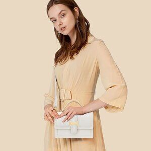 CHIC AND SIMPLE DESIGN - Small purse measures 8.5"L x 5.5"H x 3"W .Zipper closure with flap, safe and easy to use. Brief Design by pure color. Highly recommend it for its practicality and simple fashion outlook.