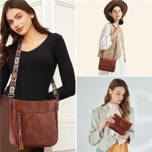 Crossbody Bags 2PCS/Set, Vegan Leather Brown