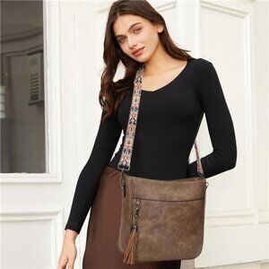 Crossbody Bags 2PCS/Set, Vegan Leather Khaki Brown