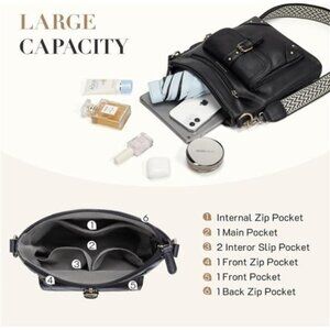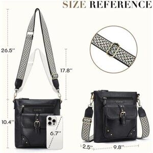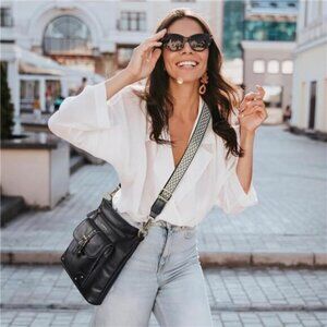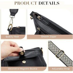 This crossbody bag is made of premium vegan PU leather, which is soft and lightweight, the fabric is also water-resistant easy to clean, and durable, with the guitar strap and gold-tone hardware, making it look stylish and vintage flair