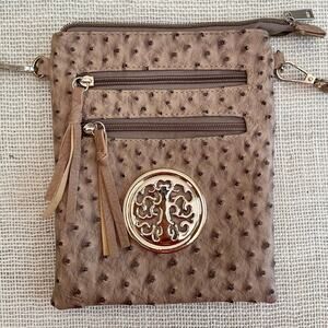 Crossbody Bags, Set of 2, Ostrich textured faux leather, Gold details.