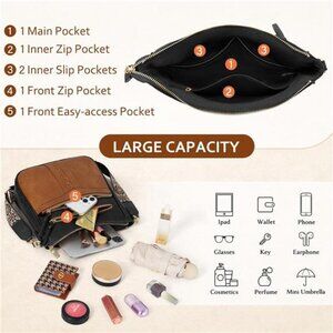 Designed with practicality in mind, this crossbody purses for women is spacious enough to hold all your daily essentials without bulk. The compact women's crossbody bag contains 1 main pocket, 1 interior zipper pocket, 2 interior slot pockets, 2 front easy-access pockets and 1 back anti-theft pocket. Perfect for phone, wallet, keys, passport, cosmetics, sunglasses and other small items.