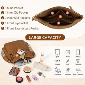 Designed with practicality in mind, this crossbody purses for women is spacious enough to hold all your daily essentials without bulk. The compact women's crossbody bag contains 1 main pocket, 1 interior zipper pocket, 2 interior slot pockets, 2 front easy-access pockets and 1 back anti-theft pocket. Perfect for phone, wallet, keys, passport, cosmetics, sunglasses and other small items.