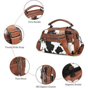 Crossbody Bags Vegan Leather with Wide Strap Cow