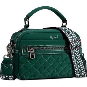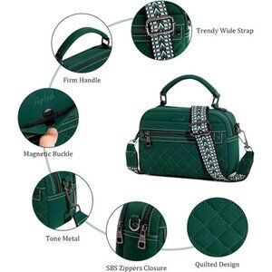 Crossbody Bags Vegan Leather with Wide Strap Green