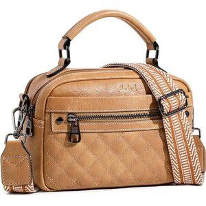 Crossbody Bags Vegan Leather with Wide Strap Khaki