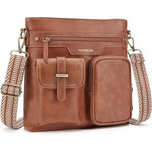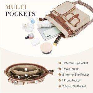 Crossbody Bags for Women Multi Pocket Soft Leather Medium Brown