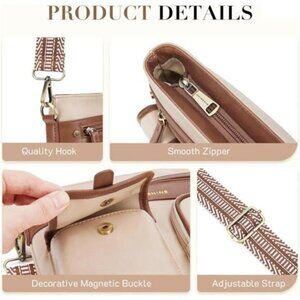 *Multi Pockets: This crossbody purse has seven pockets. The main pocket features a zip closure that secures your items safely; In the front, one magnetic buckle flap pocket, and two zipper pockets, for easy access to essentials; The interior, one zippered pocket, and two open pockets to keep you better organized