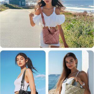 Crossbody Bags for Women, Quilted Grid Puffer Tote Handbag Shoulder Bag Small Pu
