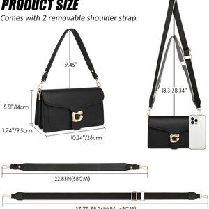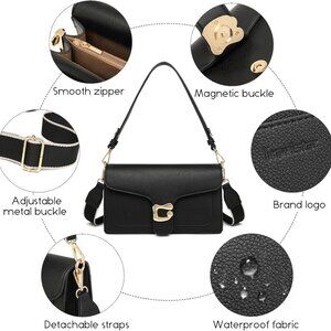 Women's Crossbody Handbags with 2 Detachable Straps : This leather crossbody bag comes with 1 detachable short leather strap and 1 adjustable wide guitar strap, allowing you to switch between casual and elegant looks flexibly. The guitar strap can be adjusted between 37.79-58.26 inches, ensuring a comfortable fit for anyone. Whether you prefer a crossbody purse, shoulder purse, underarm purse, or hand bag style, this versatile design offers options to suit your preferences.