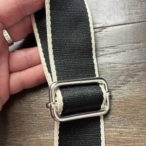 Crossbody Canvas Strap, silver tone clasp, extends to 52”