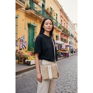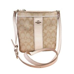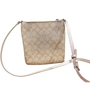 Crossbody Coach purse Adjustable Strap 8.5” X 8” beige PVC leather feel classic