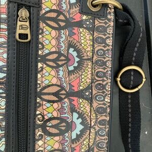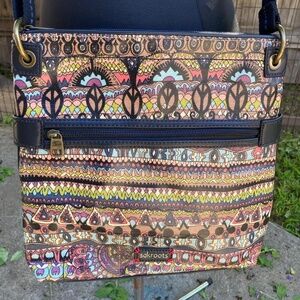 Sakroots multi-coloured crossbody bag with zipper closure and multiple pockets and adjutable shoulder strap. Nicely made in excellent condition. measurements 10.5" x 11.5" #festivalvibes