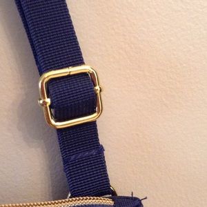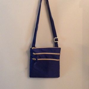 Never used. Navy purse. 3 zippers. Adjustable strap.