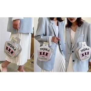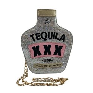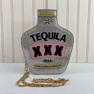 Crossbody Novelty Tequila Sparkly Silver Bag Purse Zip Close Crossbody
