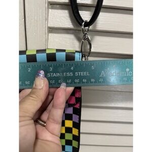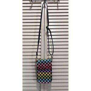 Crossbody Phone Holder Multi Colored Check Long Adj Strap Snap Close Clear Back