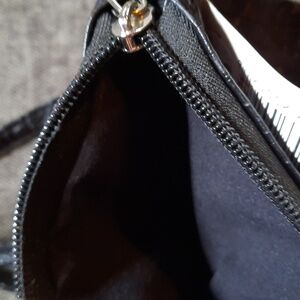 Crossbody Purse Black Pleather Vegan Embossed Design Zipper Closure