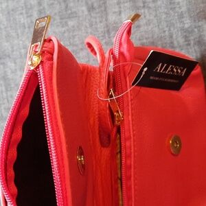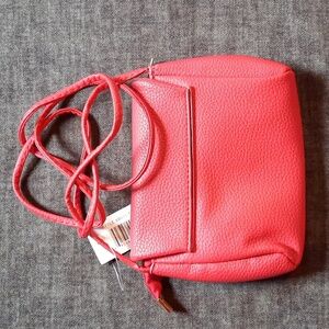 Crossbody Purse Red Pleather Vegan Embossed Design Zipper Closure
