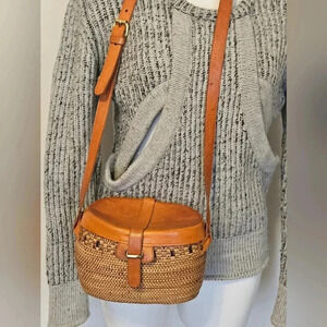 The rattan crossbody bag, meticulously handcrafted in Bali, epitomizes the fusion of