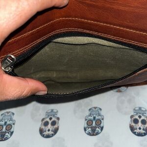 Includes one snap pocket for accessories, one back zipper pocket, one internal zipper pocket, and a spacious main compartment