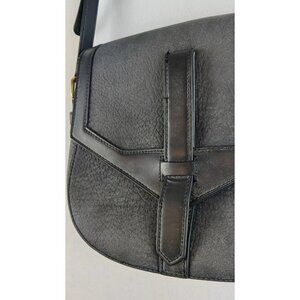 Crossbody Shoulder Strap Dark Grey Vegan Faux Leather Messenger Bag