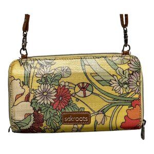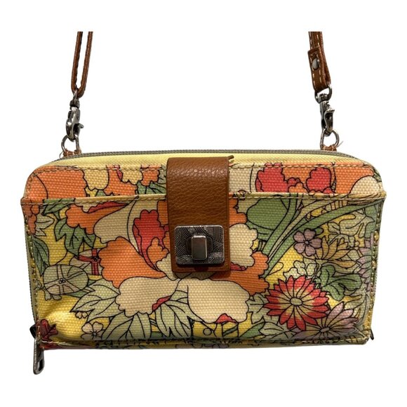 Crossbody Wallet Crossbody Floral Retro Blossom Coated Clutch Yellow Orange