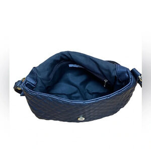 Kenneth Cole reaction black shoulder crossbody bag,gold logo on front. Length is 12.5 in, height is 10 in.Strap drop is 23 in