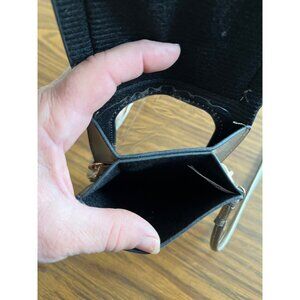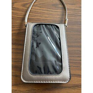Crossbody bag with tassels and clear cell phone pouch. Snap closure. Inside has two pockets. Back pocket is for phone, clear window. Inside pocket for cards or money. Good pre-owned condition.