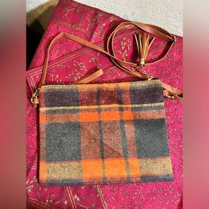 Crossbody flannel plaid bag w removable straps- carry as a wristlet or crossbody