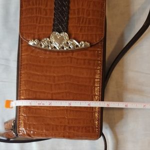 crossbody pouch / wallet. alligator texture with beautiful detail. zips up and has magnetic snap. lots of space for cards and money. removable strap. measurements provided in pictures. *measurements are approximate * perfect condition. no flaws noted.