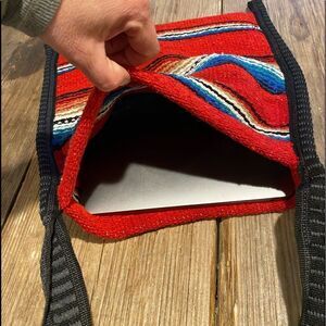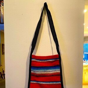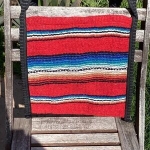Multi-use bags sewn from the Rio Bravo Blankets with sturdy straps that can be worn cross-body.