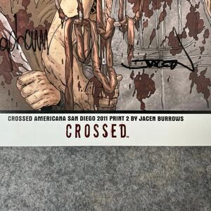 "Crossed" is a comic book series created by Garth Ennis and Jacen Burrows. The print is titled "Crossed Americana San Diego 2011 Print 2 by Jacen Burrows," which is a limited edition item (LTD TO 250) from Avatar Press.