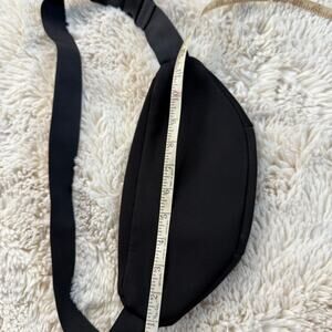 • Strap: Adjustable black strap with buckle closure (fits waist or crossbody)