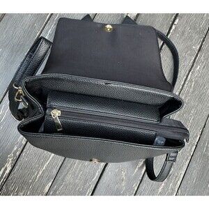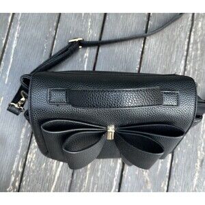Crossi New York Bow Accent Beveled Purse Black Handle Crossbody EUC