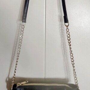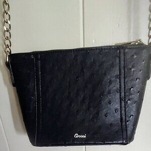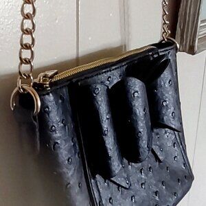 Dressy black crossbody bow bag versatile for office or a night out, gold chain and hardware.