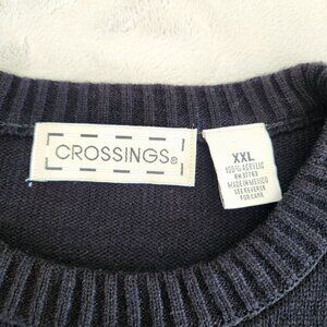 Crossings Mens Sweater Pull Over Black and Gray Fair Isle Print Ribbed Size 2XL