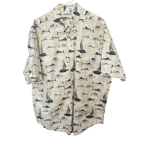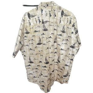 Crossings Swordfish and Boats Button-Down Shirt Men's Size XL Cream Blue
