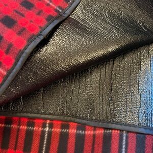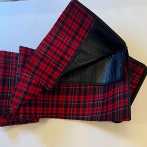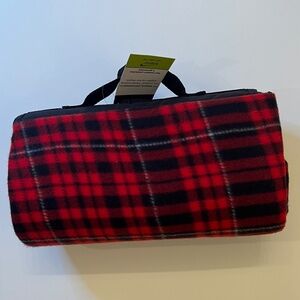 University of Missouri Crossland plaid roll up picnic blanket. Polyester fleece plaid with water resistant PVC backing and handle for carrying. Never used.