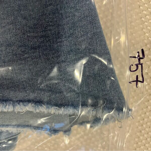 ✨Crossover Button High rise large comfort stretch blue denim shorts frayed hem