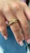 Hand-finished in 14k gold plating, this ring features three bands, with one diagonally overlapping the other two.