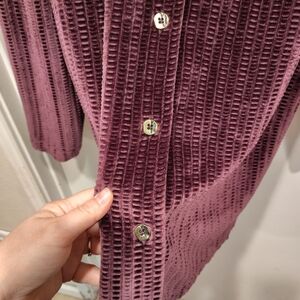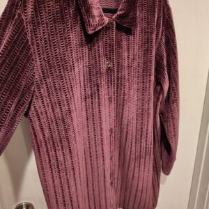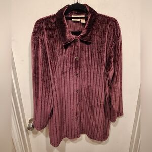 Crossroads Purple Textured Velour Longline Button Down Shirt Jacket Shacket 1X