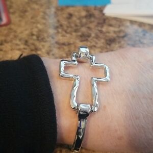 Cross silver tone bracelet