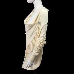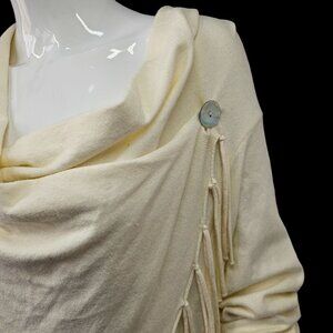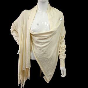 Crosstree Lane Cardigan Fringed White Wrap OS Acrylic Knit Mother Pearl Button