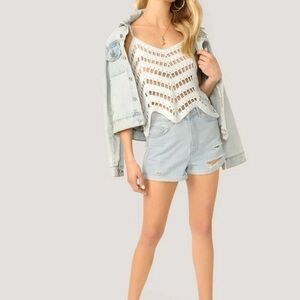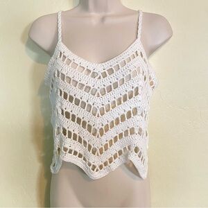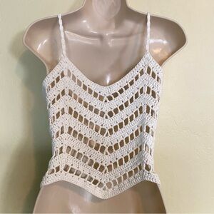 Crotchet Knit Cream Boho Festival Tank Top Size Small S