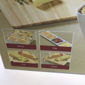 3 piece set with a bowl, dipping tray and bamboo cutting board