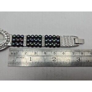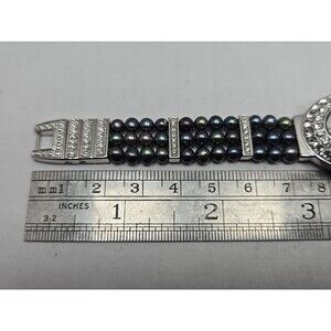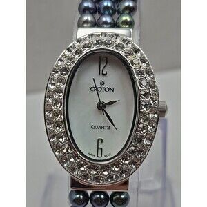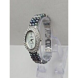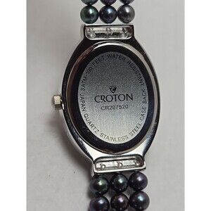 Croton Womens Iridescent Black Pearl Watch Crystal Pave Bracelet New Battery