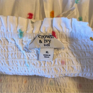 Crown And Ivy Girls Size XL Smocked Tiered Dress White & Multicolored Tassel Pom