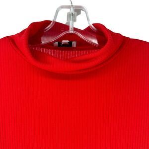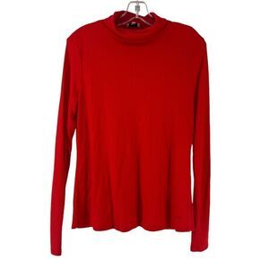 Crown And Ivy Ribbed Turtleneck Top True Red Womens Size Petite L PL Long Sleeve